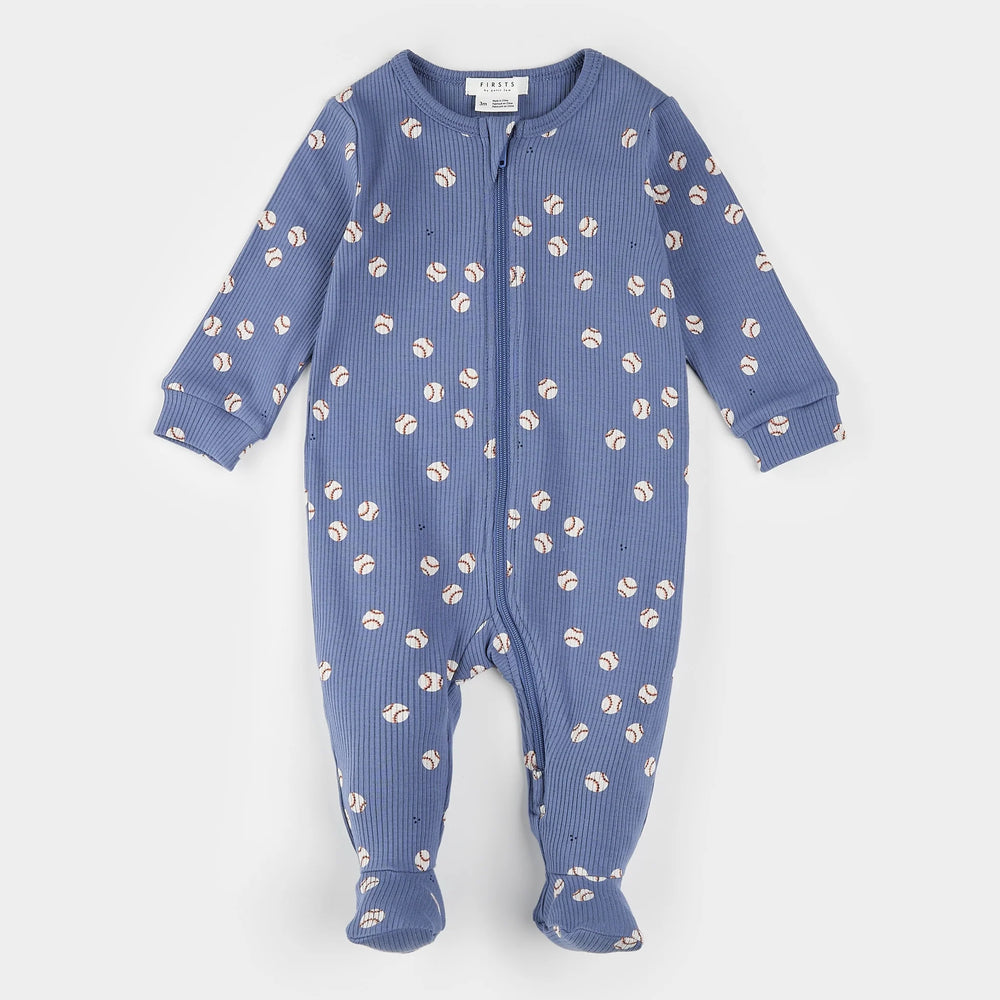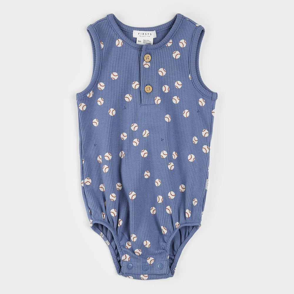 Petit Lem - Baseball Print on Ribbed Royal Blue Romper