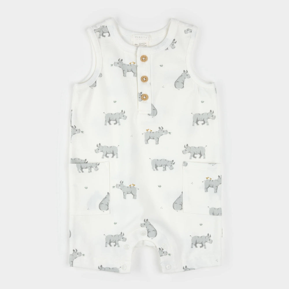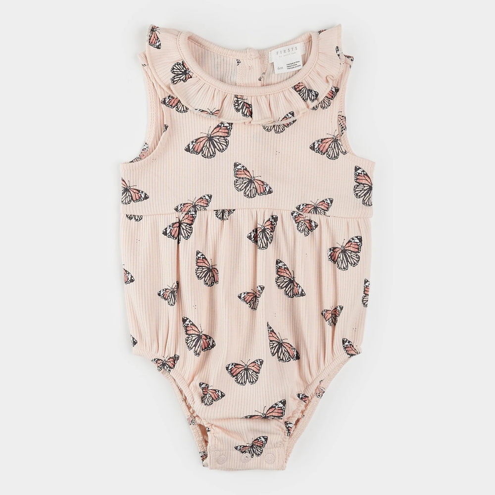 Petit Lem - Daffodil Print on Ribbed Off-White Romper