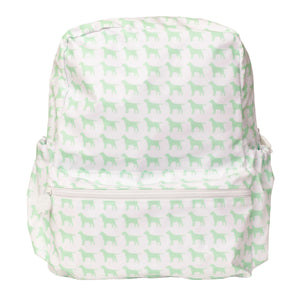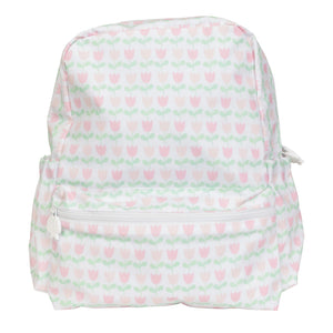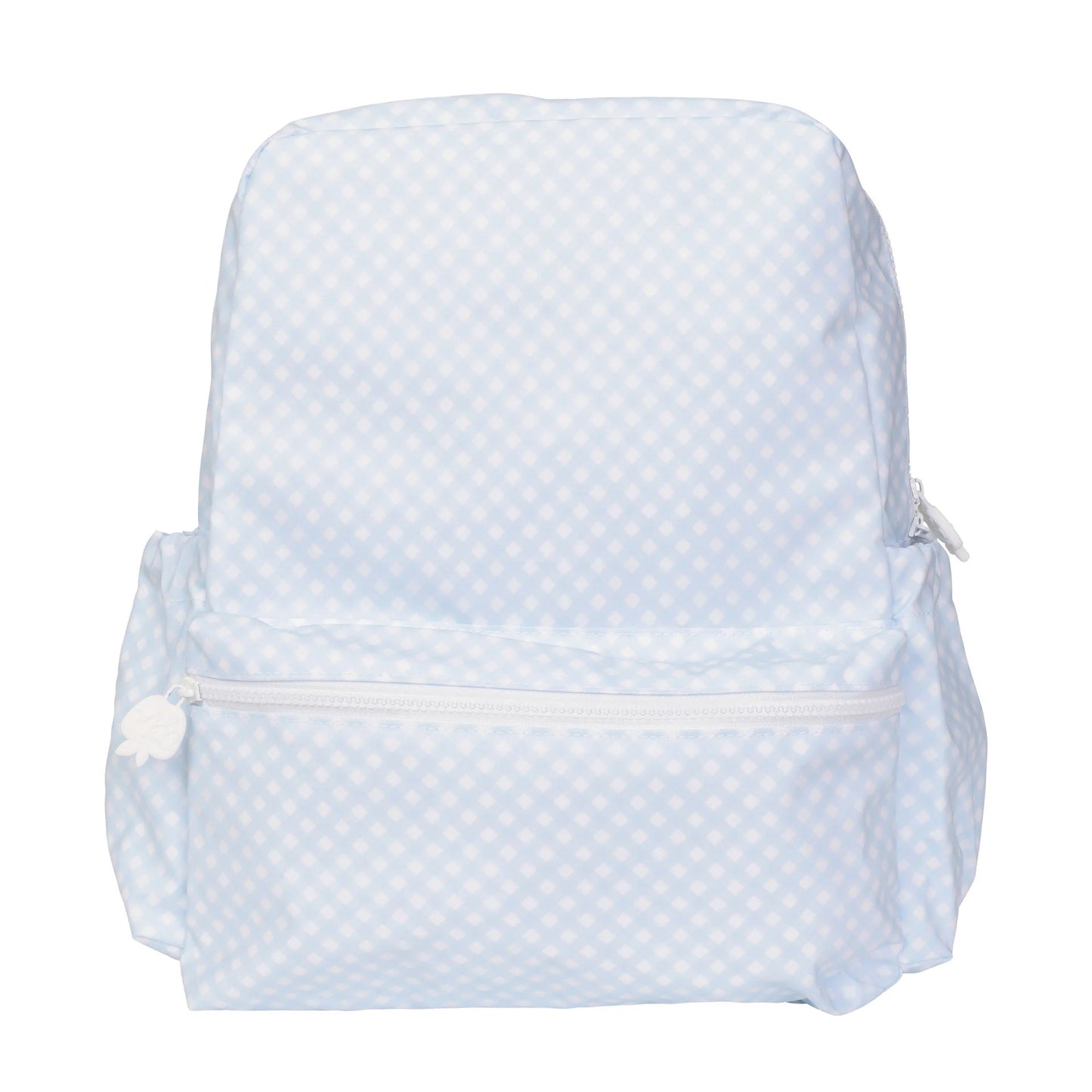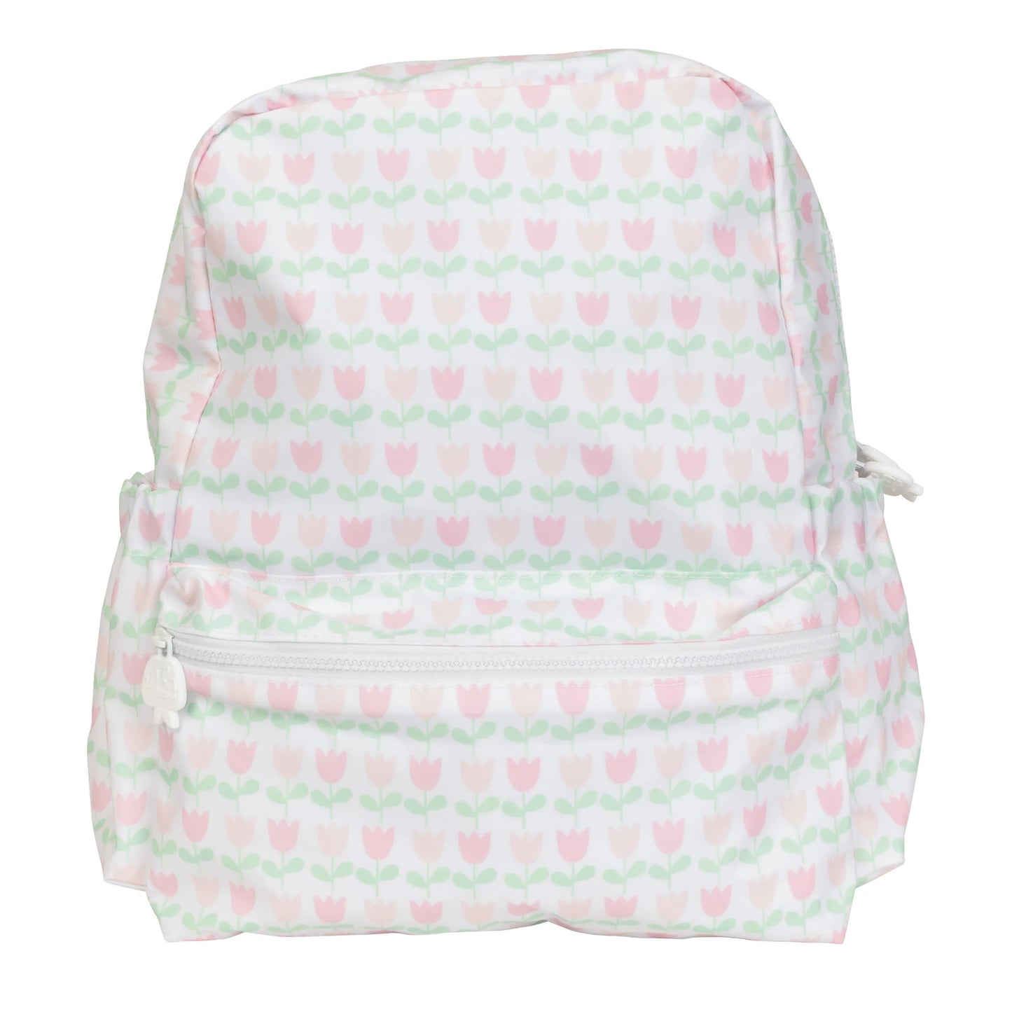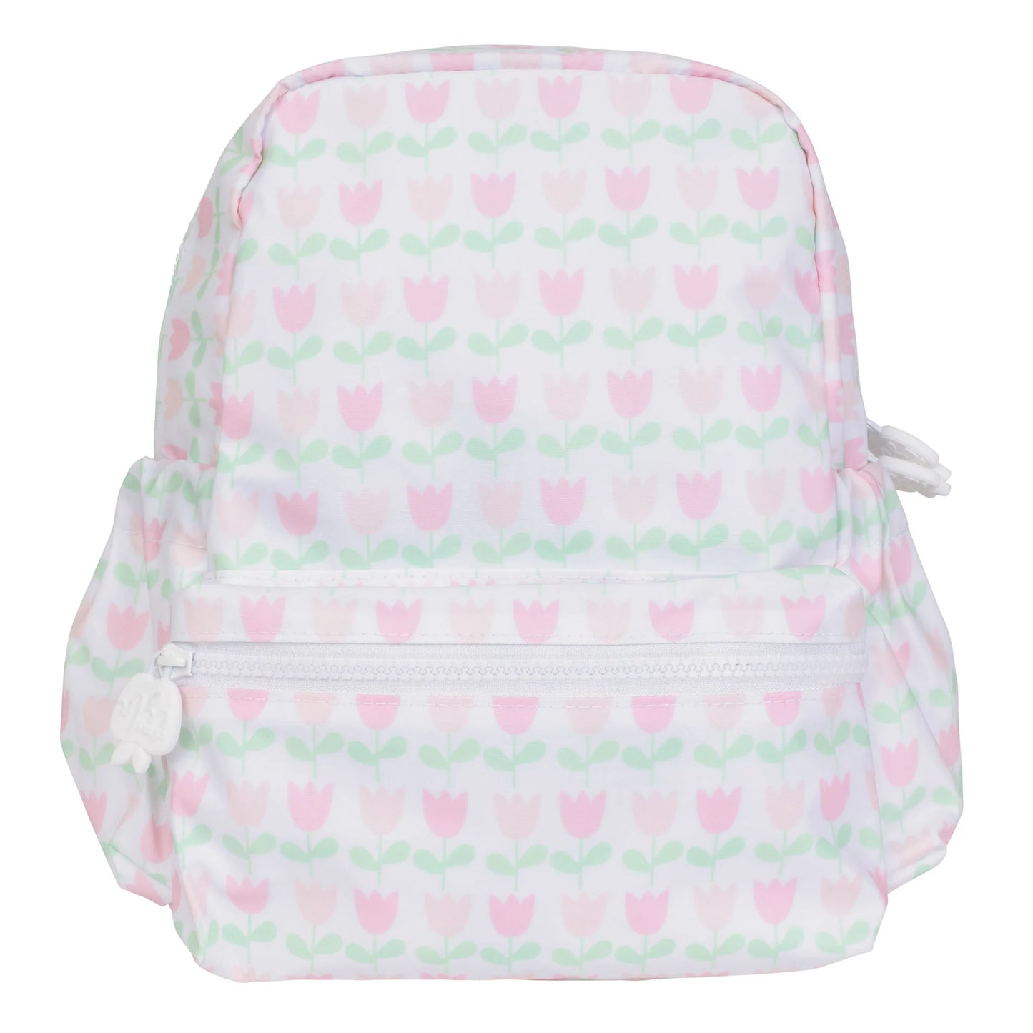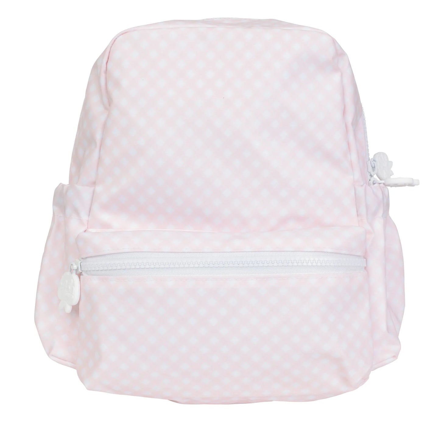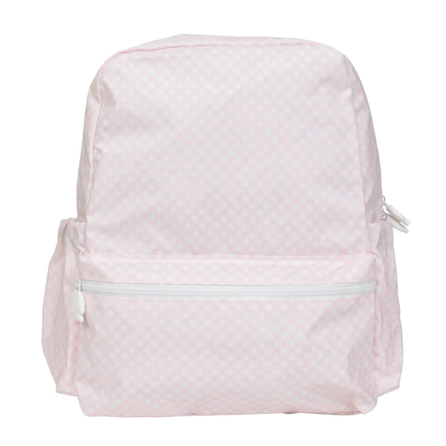 Coated, clean, and cute! The Backpack comes in four wipeable classic patterns, and equipped with an outer zipped pocket and two drink holder sleeves.
