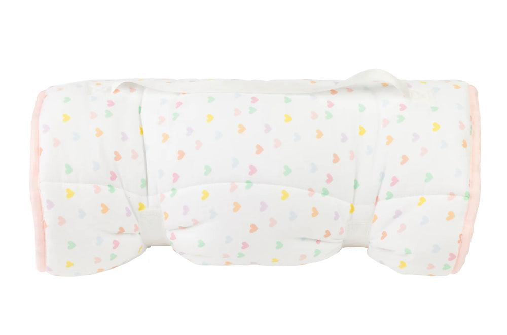 Have no fear about your child sleeping on the ground at school - The Nap Mat is pure luxury! Made from cotton with soft bamboo pillowcase and blanket inside, and poly fill throughout. Plush and comfortable, your toddler is sure to get great rest. Shoulder strap is two inches wide to allow plenty of room for embroidery.