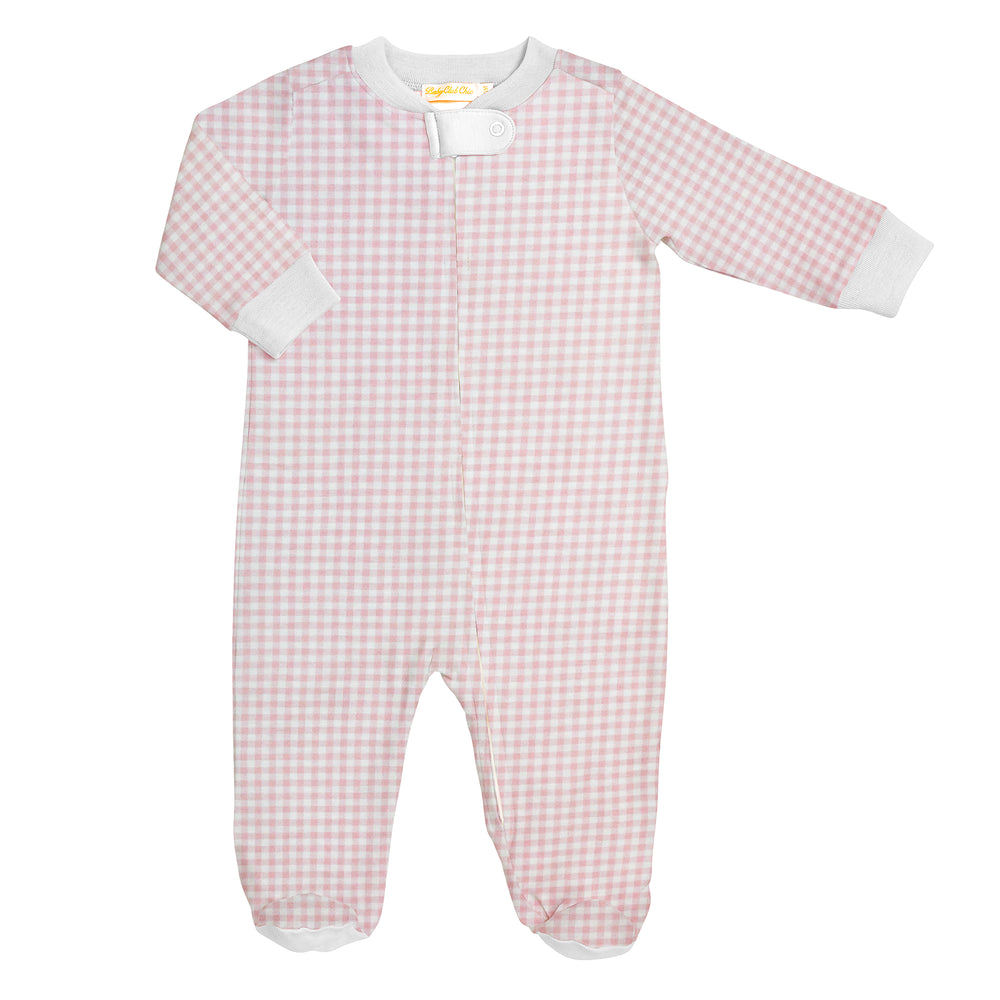 Baby Club Chic - Pink Mini Checks Printed Zip Footie