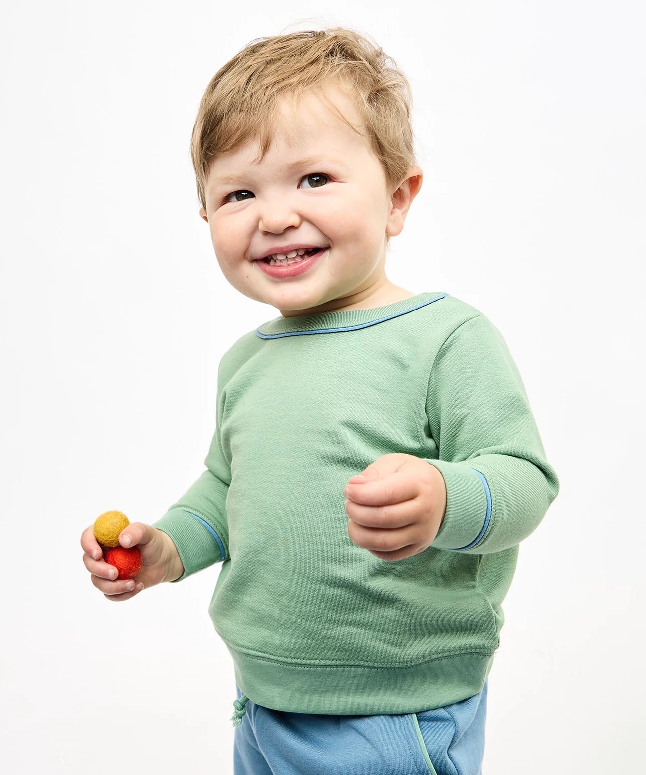 Our first ever sweatshirt! Super cozy with contrast piping around neck and arms. Perfect to play in and stylish enough to be worn around town. French terry on the inside and jersey on the outside. Kids love wearing it.