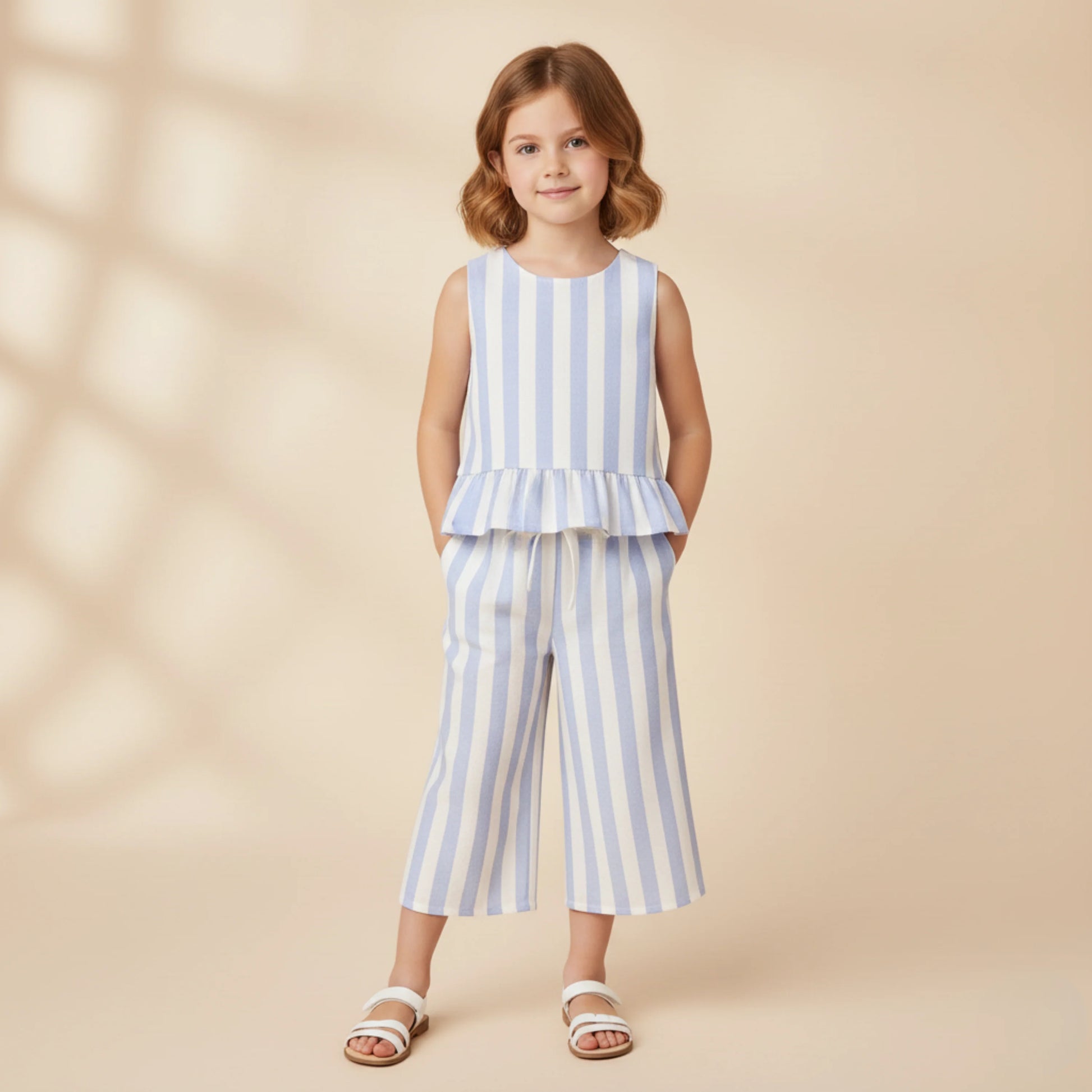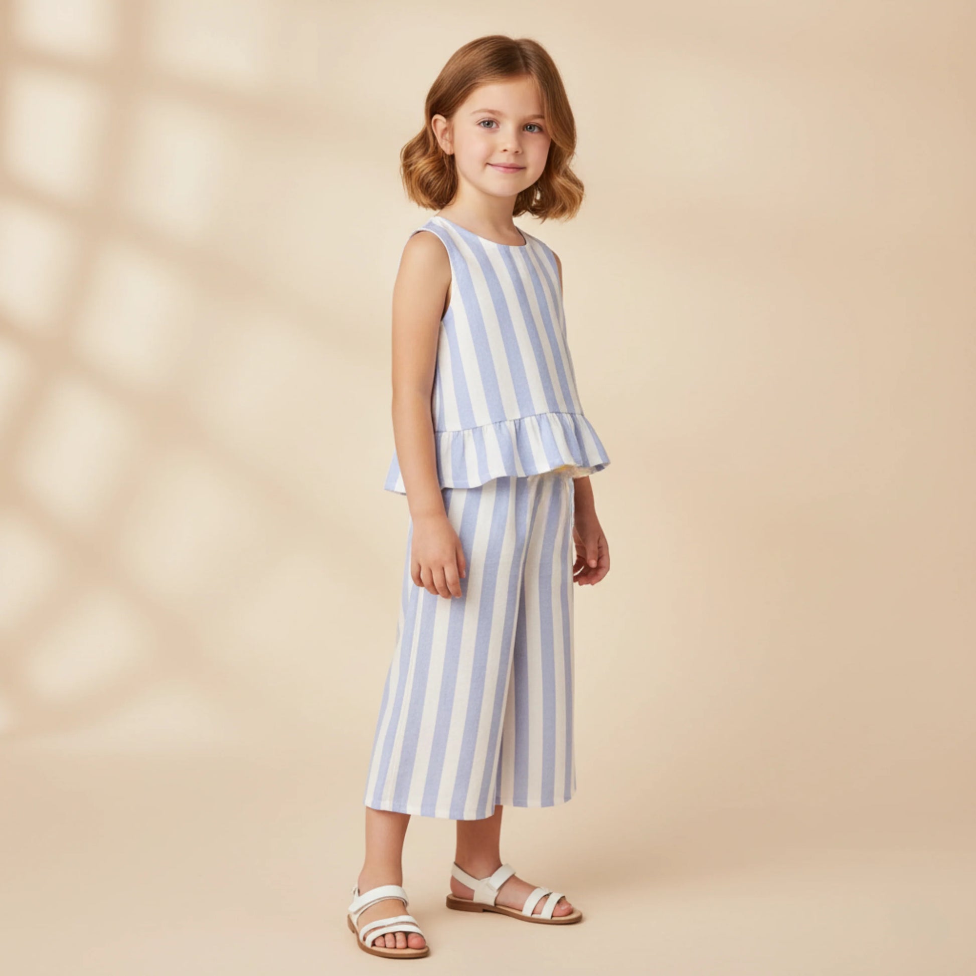 Our Ruffle Top and Pant Set in Blue Stripes offers a classic, fresh pattern that’s perfect for any occasion. The breathable linen-cotton blend keeps your little one comfortable throughout the day, while the ruffle details add a sweet, playful vibe.