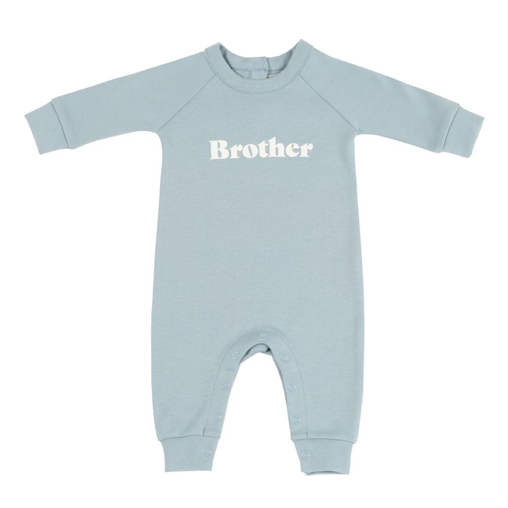 Sky Blue cotton all-in-one featuring a white 'Brother' slogan.