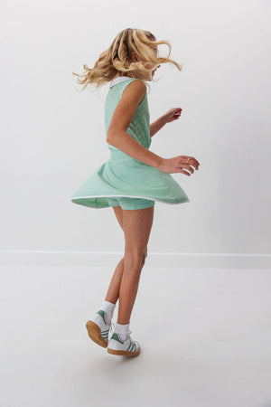 a girls tennis skirt that is made to perform! a beautiful a-line silhouette that is classic with a modern thick elastic waistband. made with our anti-odor shorts underneath complete with a pocket for a tennis ball and/or phone. the cut is exceptional!