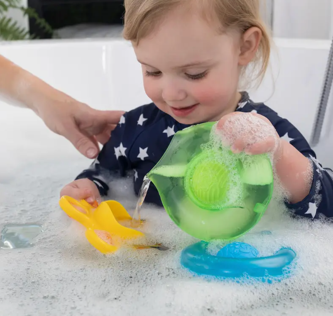 Splish splash, make bath time a blast with Fat Brain's Dimpl Splash! This baby bath toy is colorful and textured to engage and entertain your little one. Say goodbye to fussy bath times and hello to squeaky-clean fun! (Rub-a-dub-dub, get one for your bub!)