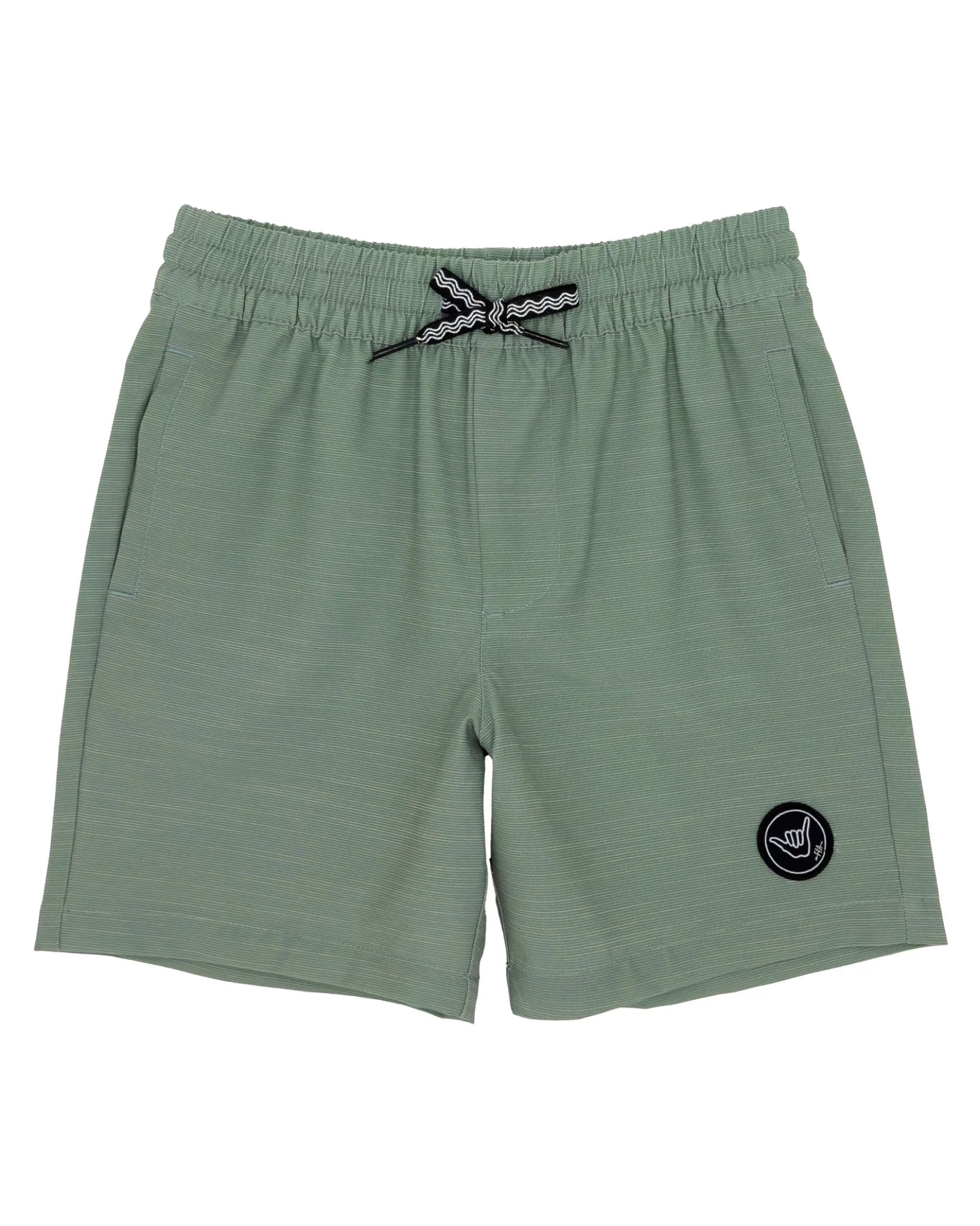 - Hybrid short made from 4-Way stretch fabric with rapid drying that allows you to go from school to the beach, includes elastic waistband and drawcord for easy fit, side pockets and shaka patch.