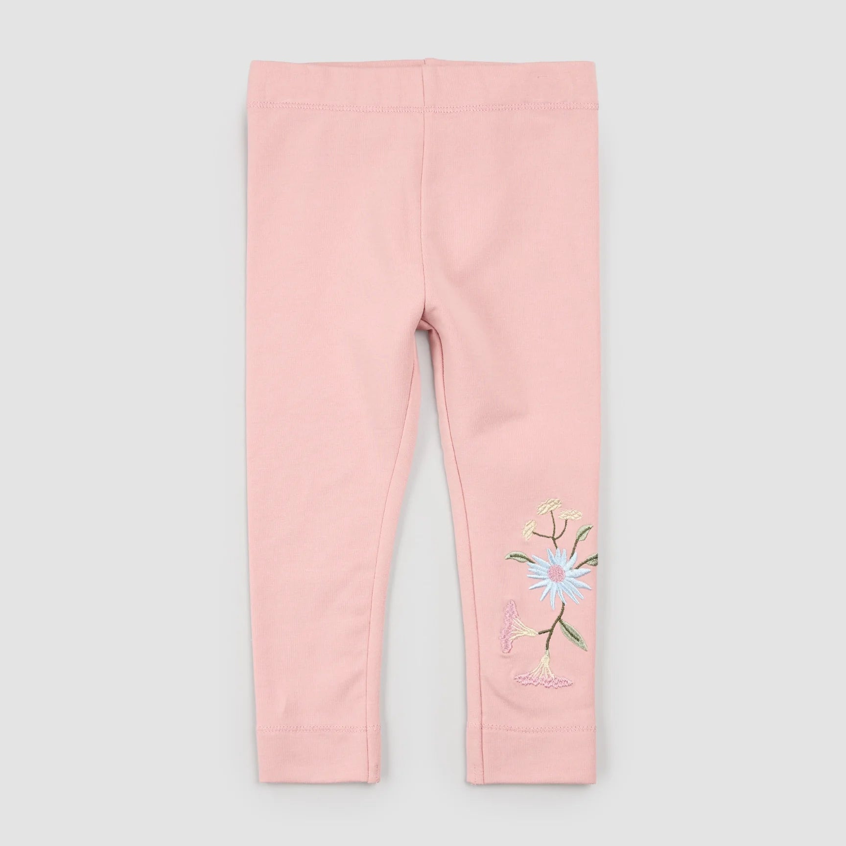 A pretty-in-pink pair of leggings with a sweet floral embroidery down one leg. These comfy French Terry leggings are easy to wear and are perfect for active girls who love holding onto the summertime for as long as possible. With an elasticated waistband, the leggings encourage independent dressing and there’s a coordinating sweatshirt available for easy pairing.