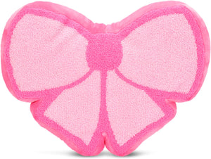 - This full-color, chenille plush pillow features a perfectly pink bow ready to liven up any space