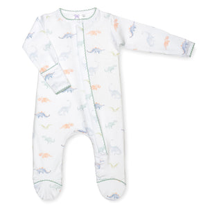 This adorable, classic style footie made of ultra-soft Pima cotton will be a favorite for both you and baby. Features zipper closure for easy changes and sweet picot trim details.