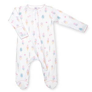 This adorable, classic style footie made of ultra-soft Pima cotton will be a favorite for both you and baby. Features zipper closure for easy changes and sweet picot trim details.