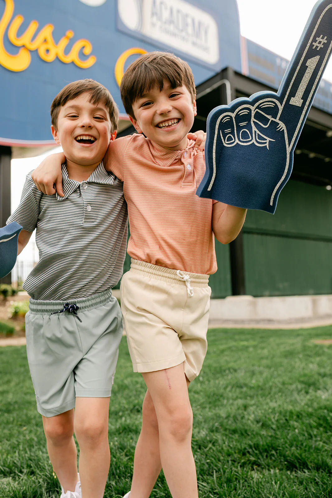 Our Harrison beloved shorts are back this fall in our newest color, latte. Made from a light weight poly-blend featuring a terry cloth elastic waist, patterned drawstring and a pocket on the back. Pair these with our printed or solid tees or knit polos.