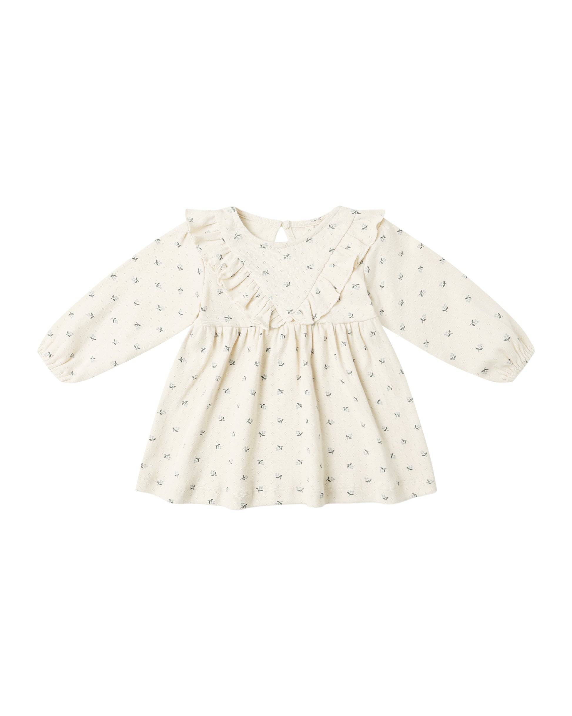 This long sleeve dress in our classic pointelle fabric features delicate V-ruffle detail, a button-back closure for easy changing, and matching bloomers for a sweet finishing touch.