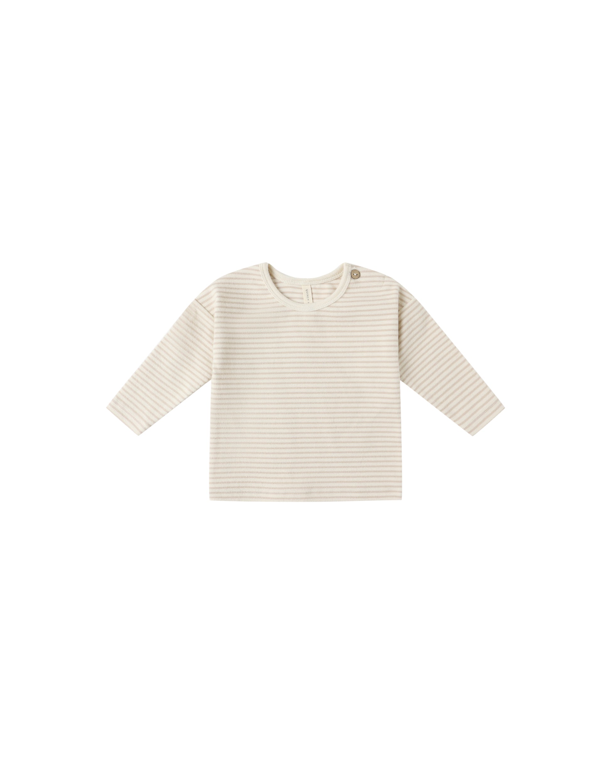 Our Long Sleeve Tee is crafted from soft organic brushed cotton for all-day comfort. Featuring a shoulder snap on sizes 0-3M - 18-24M for easy wear. Pair with our Drawstring Pants for a cozy, coordinated look.