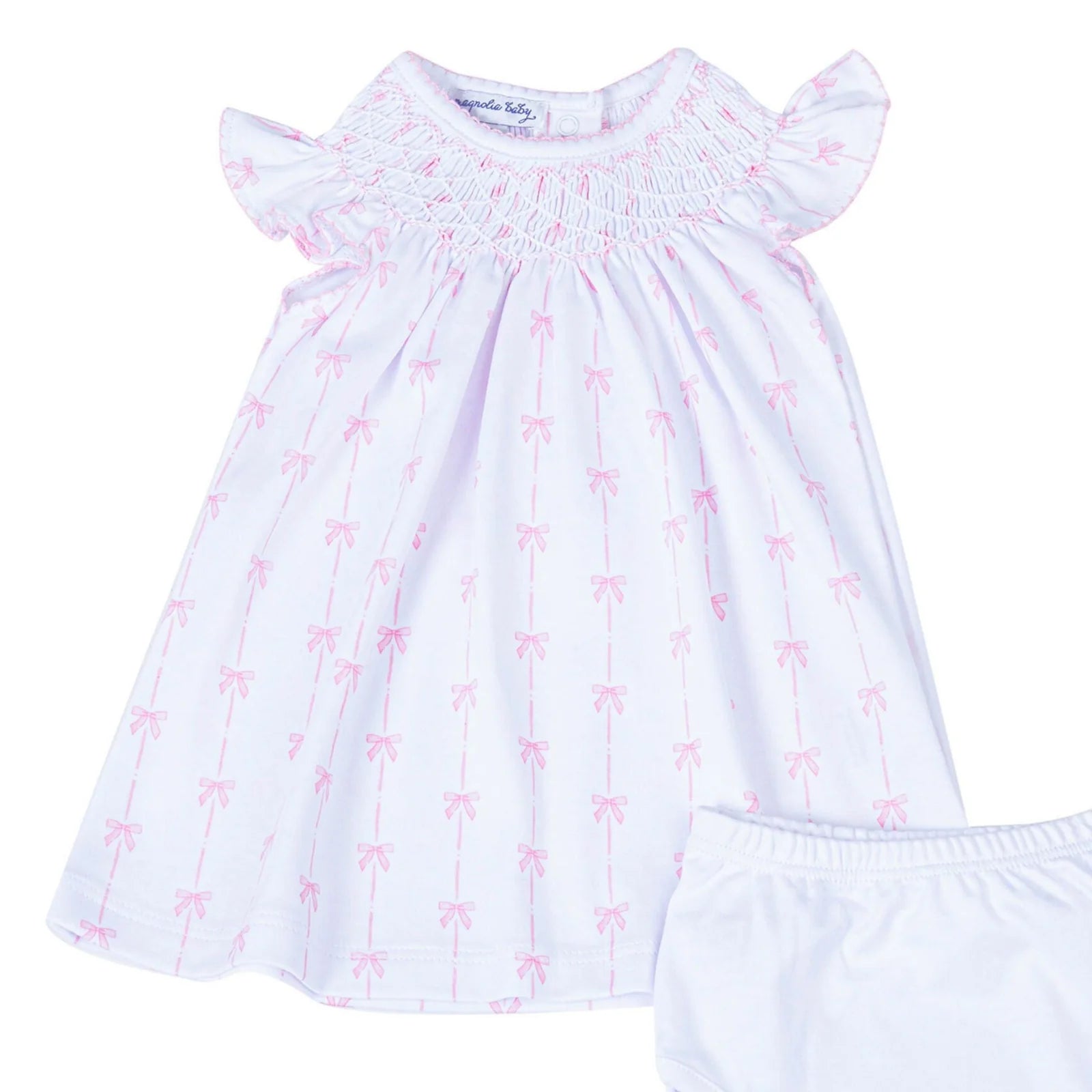 Dress your little one in sweet elegance with our Magnolia Baby Amelia's Classics Bishop Dress. Crafted with the most luxurious Pima Cotton. Exquisite hand-embroidered detailing graces the neckline. Designed for ultimate comfort and style, it's a treasured addition to your baby's layette.