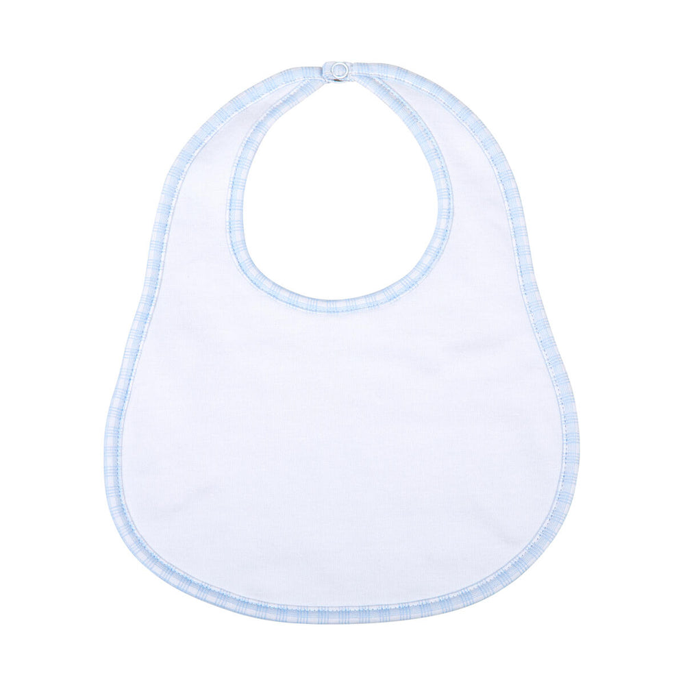 Indulge in luxury with our Magnolia Baby New Beginnings Blue Bib. Crafted from crisp white fabric and adorned with delicate blue trim, this bib is both functional and fashionable. Keep your little one clean and stylish during mealtime with this exclusive piece.