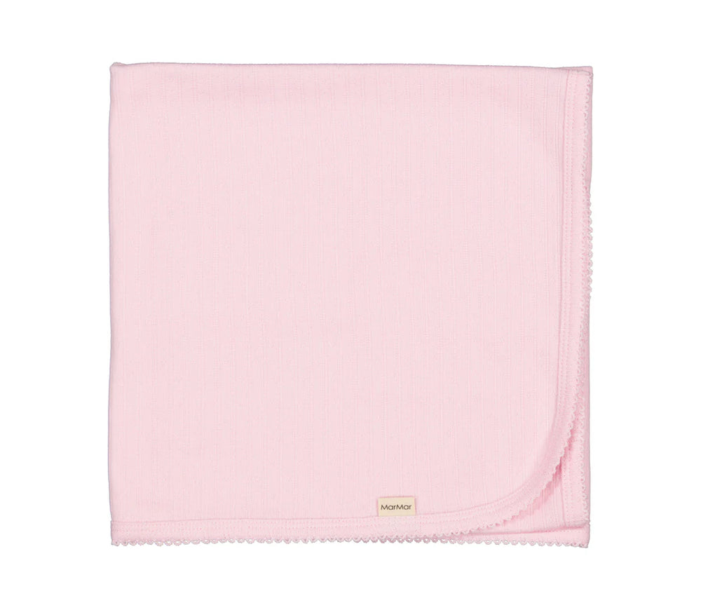 Baby blanket with rounded corners. The blanket measures 80 x 80 cm and is soft, stretchy and comfortable to wear.