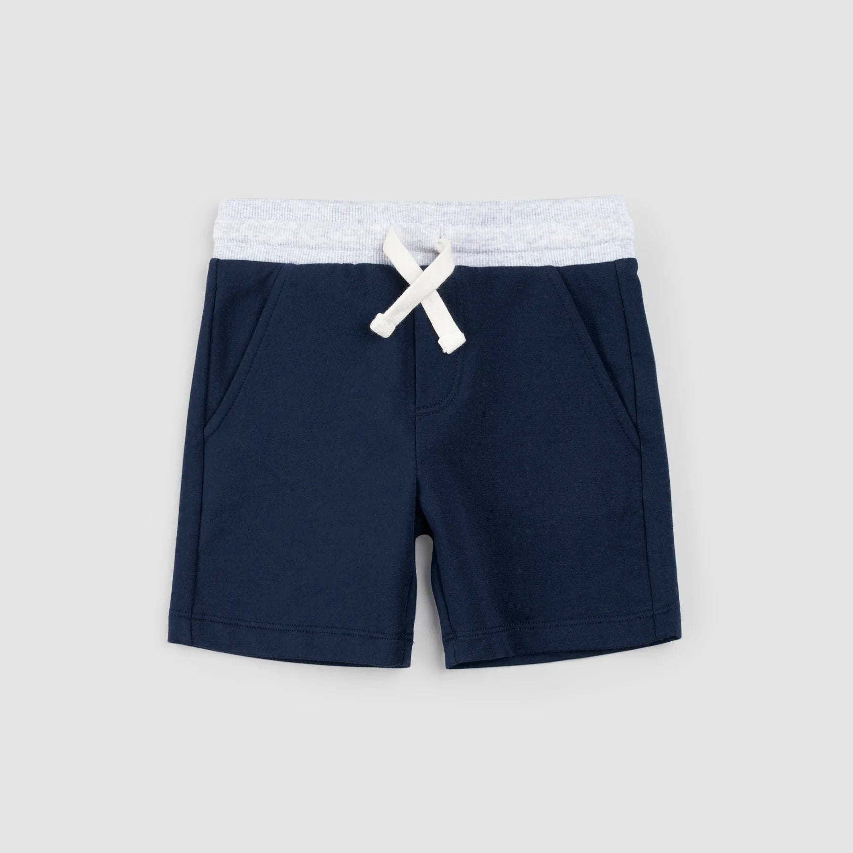 These navy shorts have a smart-casual style which can be dressed up or down. With a light grey, elasticated waistband they’re easy to pull on and off at the beginning or end of a busy day. Made from organically grown cotton French terry, the shorts are soft and comfortable for all day wear. Pair with t-shirts from the same range for a quick and easy outfit that will see them through the Spring.