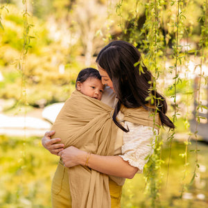 Graceful and effortless, the MOBY Ring Sling is both fashionable and functional. Ring Slings are a beloved traditional babywearing style. From the Mexican rebozo to the Indonesian selendang, parents have used fabric sling-style carriers for thousands of years because they are an elegantly simple way to keep little ones close and comforted next their parents throughout the day. MOBY’s Ring Sling is crafted from a breezy, breathable double gauze cotton. It is lovely and lightweight, but with the durability and strength to provide years of comfortable carrying. The smoothed metal rings allow for quick and easy adjustment and a customized, comfortable fit. Wear littles ones on the front or on your hip. Bundles compactly to tote in your purse or diaper bag. Whether breastfeeding an infant or toting your toddler, you’ll be ready at a moment’s notice to slip on your sling and start snuggling.