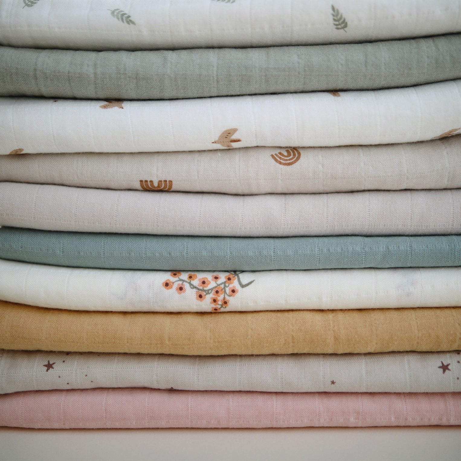 Nap time just got so much more cozy with the Mushie muslin baby swaddle - ideal for swaddling, nursing, and cuddling your baby.