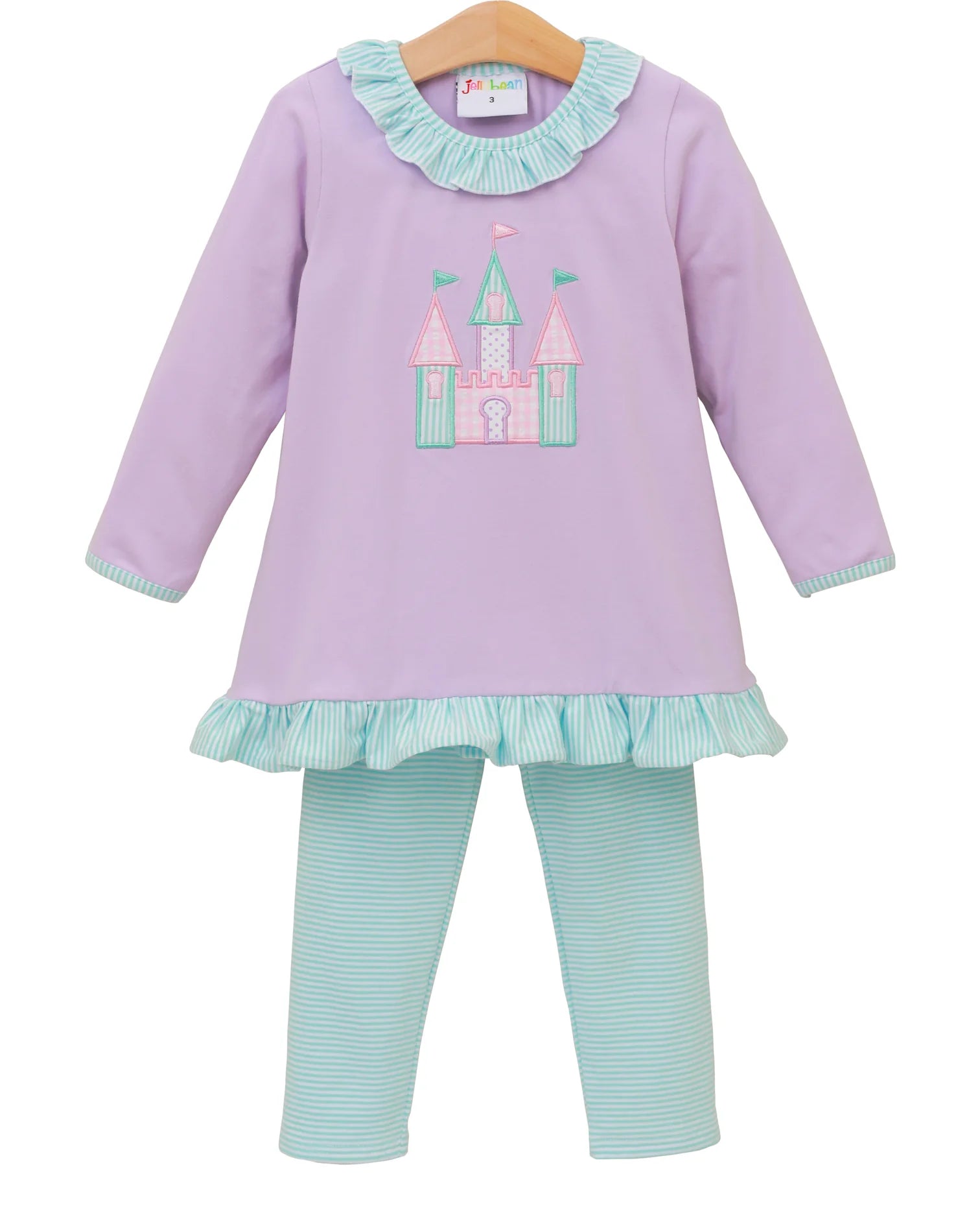 Embark on a fairytale adventure with our Once Upon a Time Ruffle Pant Set! This enchanting fall outfit features a magical castle applique and an adorable ruffle collar that perfectly matches the coordinating pants. Your little one will look like royalty while staying cozy during autumn playtime. Perfect for everyday magic or special occasions!