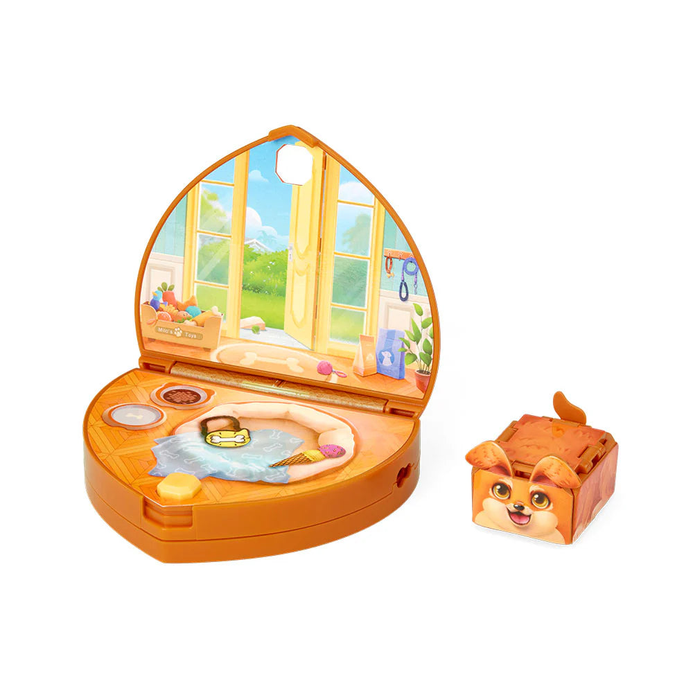 Open the top of the purse to reveal each pet’s cozy hideaway to play.