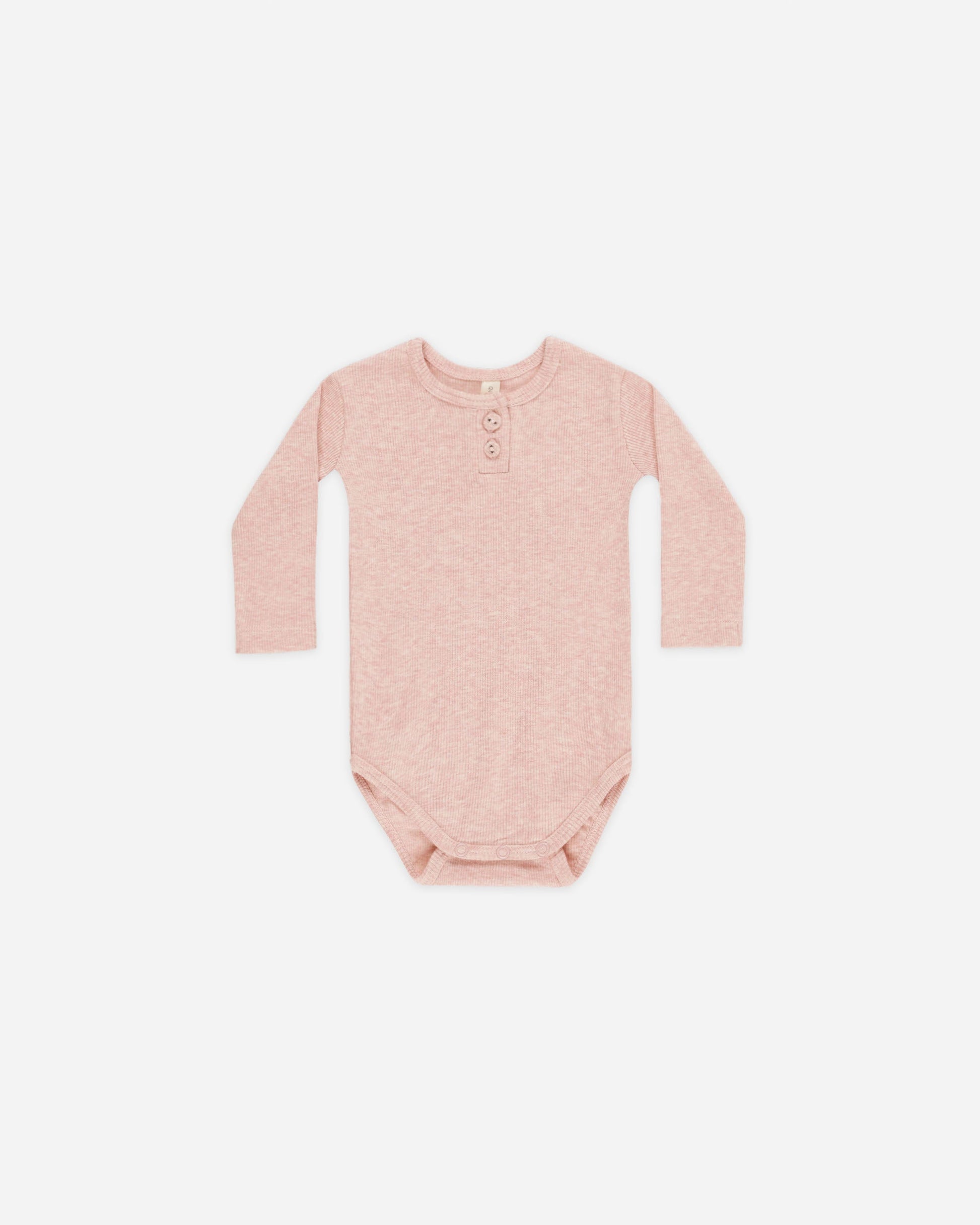 Our Henley Long Sleeve Bodysuit, made from our ribbed melange knit, features a two-button placket at the center front and bottom snaps for easy changes. Pair with our Ribbed Leggings to complete your little one's look.
