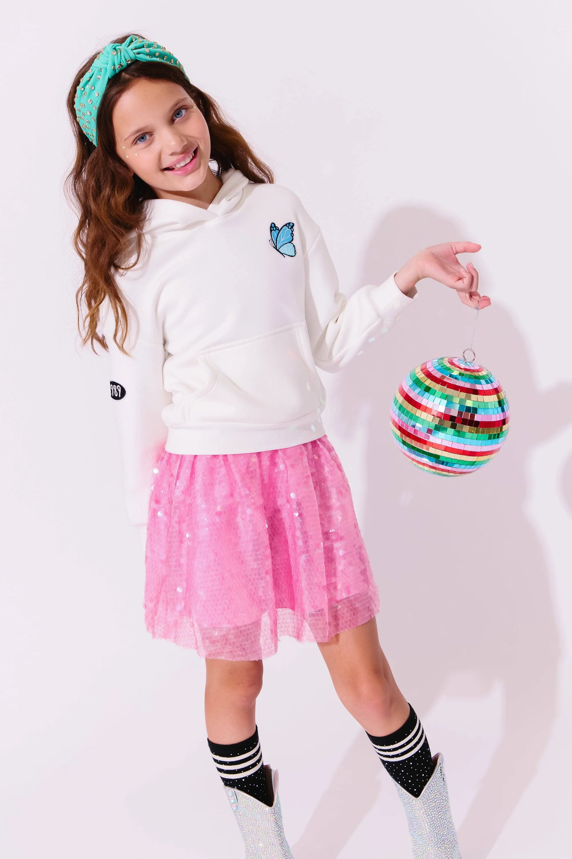 - Show off your fandom with the this hoodie, featuring a bold pink heart and sparkling "Swiftie" embroidery on the back.