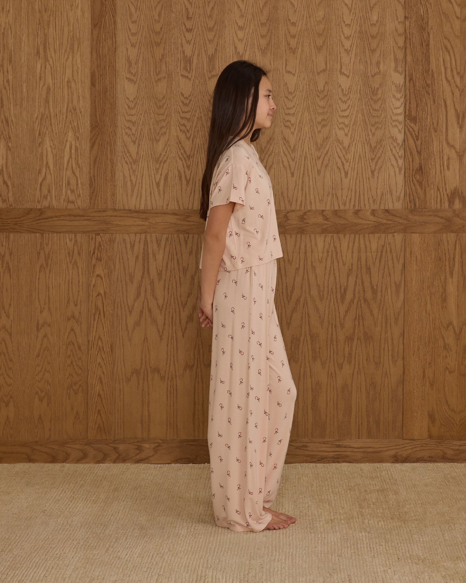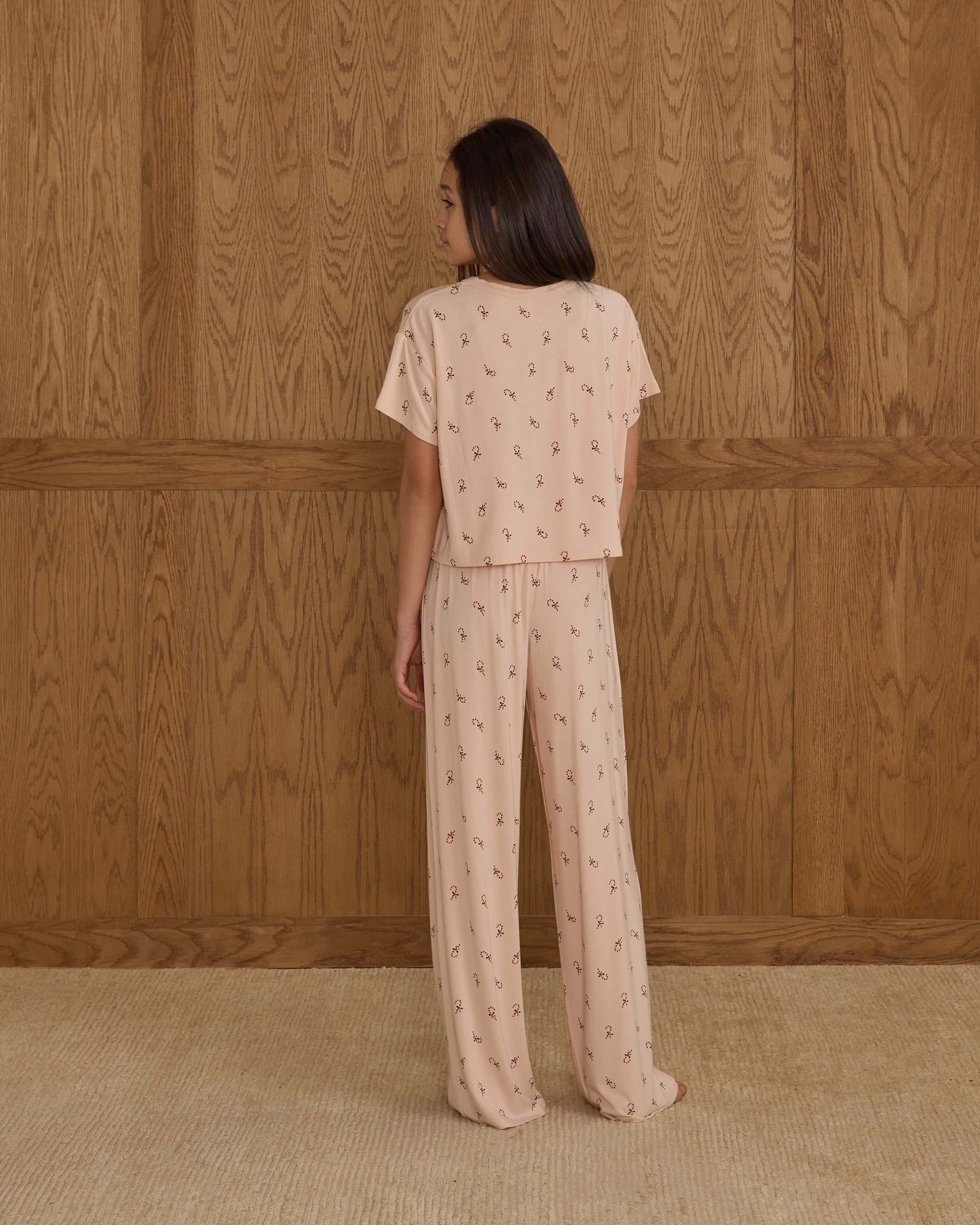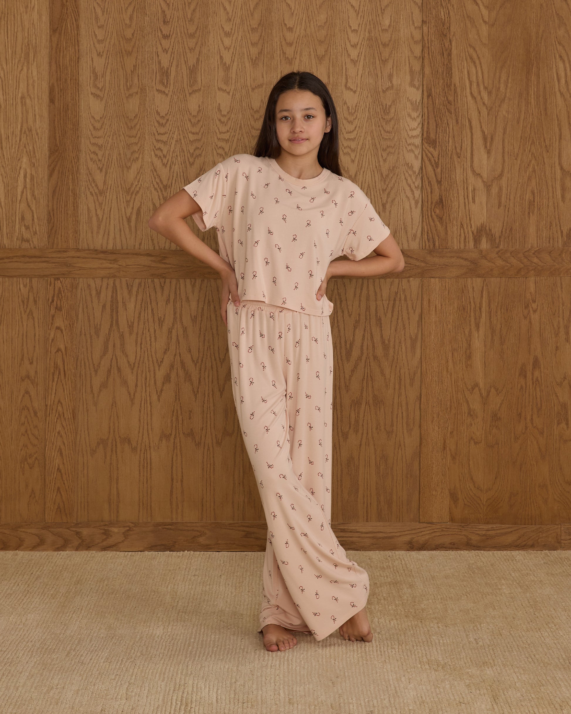 Our Ruthie set includes a soft short-sleeve top and cozy pants. The top has a relaxed fit, and the pants have an elasticized waistband. It is one of the comfiest sets your teen will ever wear!