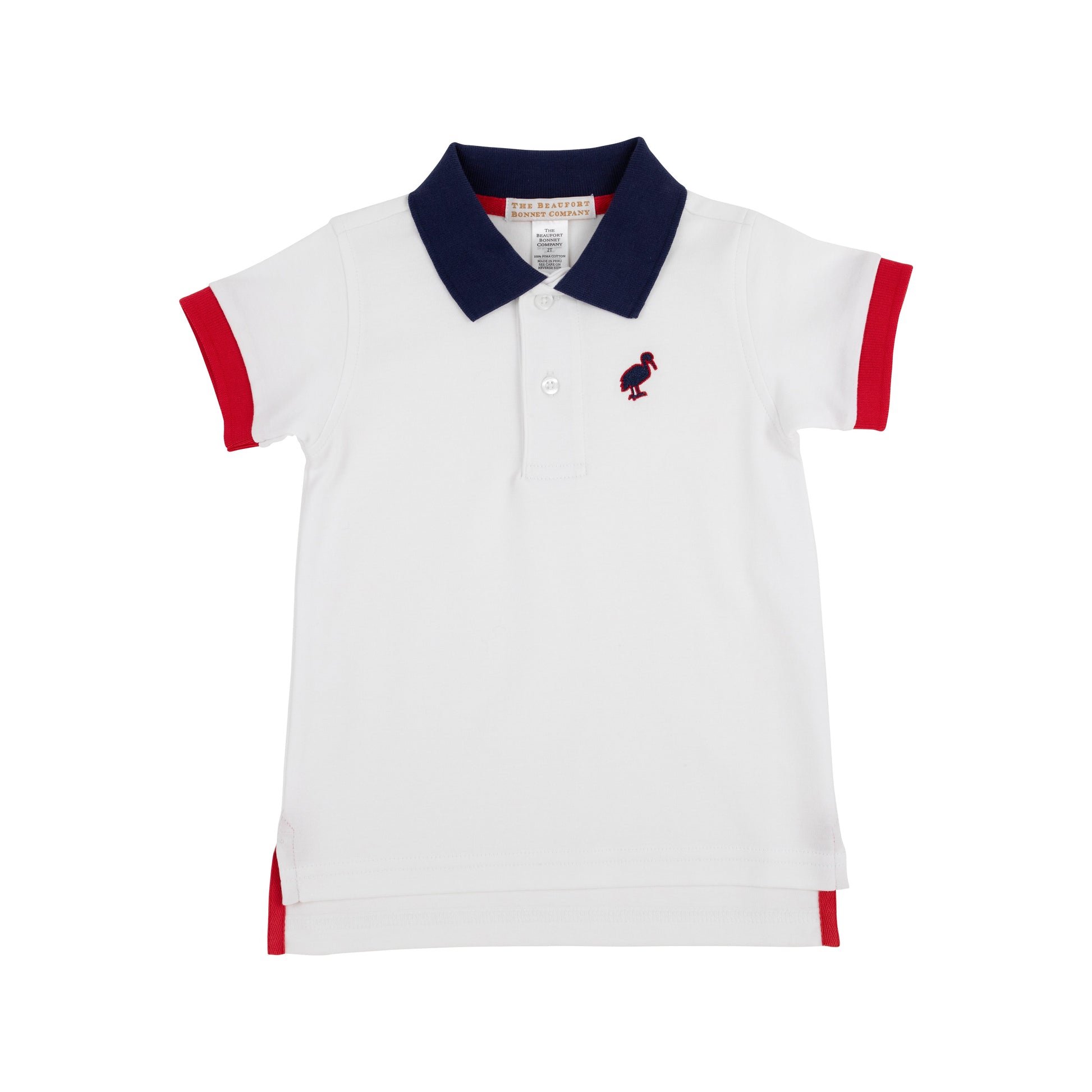 Our Prim & Proper Polo in Worth Avenue White with Richmond Red and Nantucket Navy will have him looking perfectly preppy for any occasion! Your little gent will love wearing this sweet polo all season long.