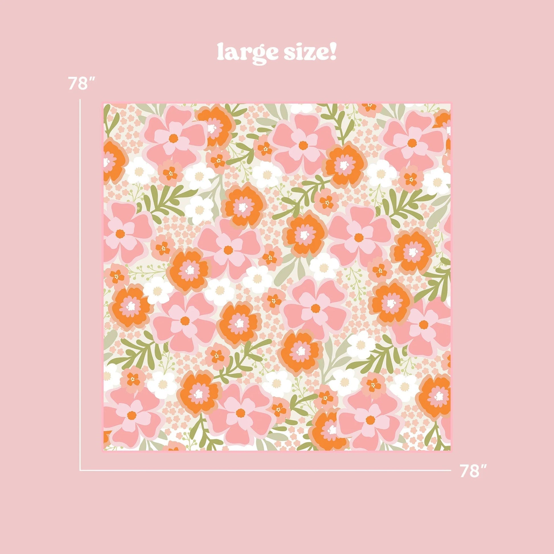 The Darling Effect - Beyond Blooms Pink Orange On-the-Go Quilted Picnic Blanket