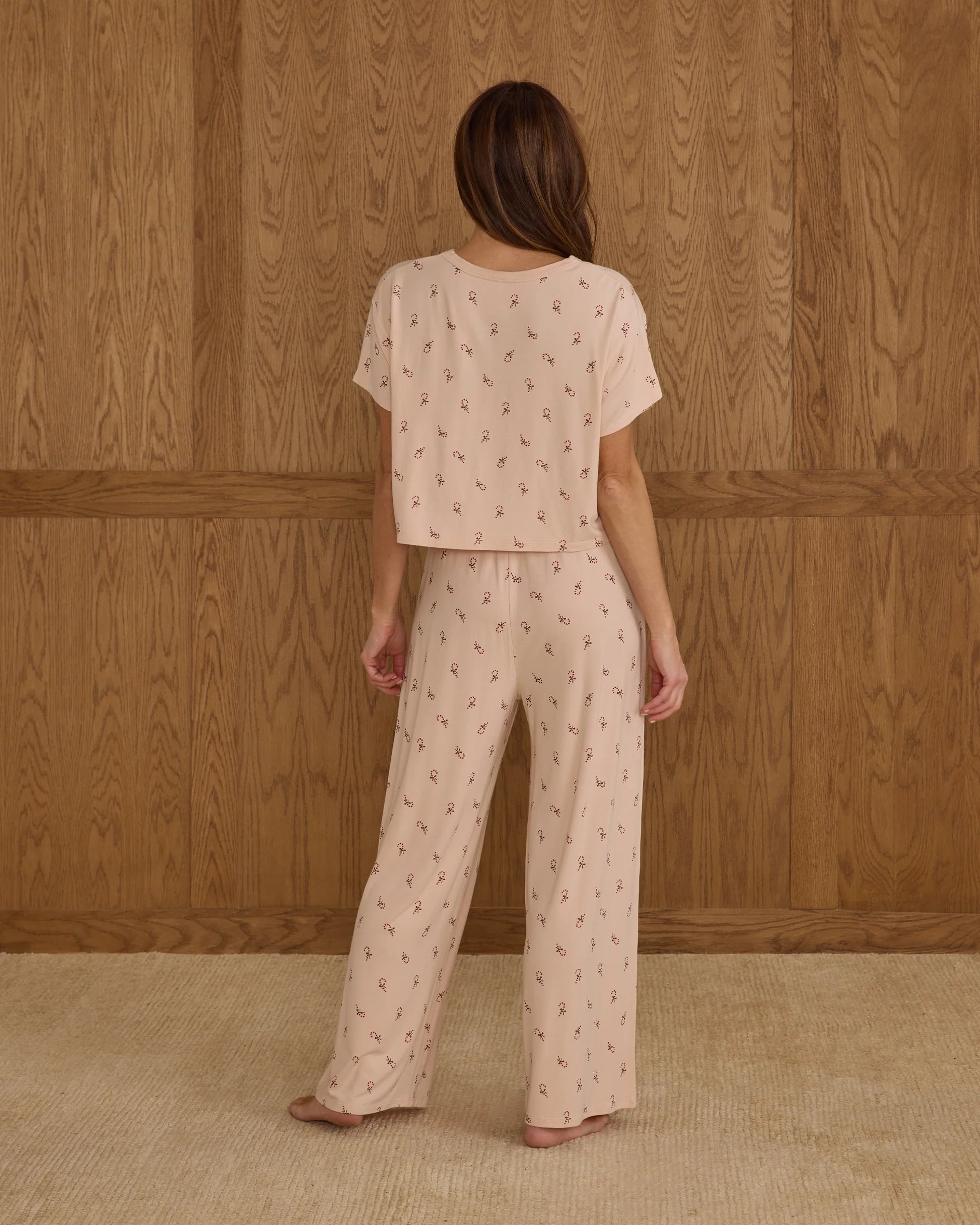 Our Ruthie set includes a soft short-sleeve top and cozy pants. The top has a relaxed fit, and the pants have an elasticized waistband. It is one of the comfiest sets you will ever wear and you can even match it with your little ones in it!