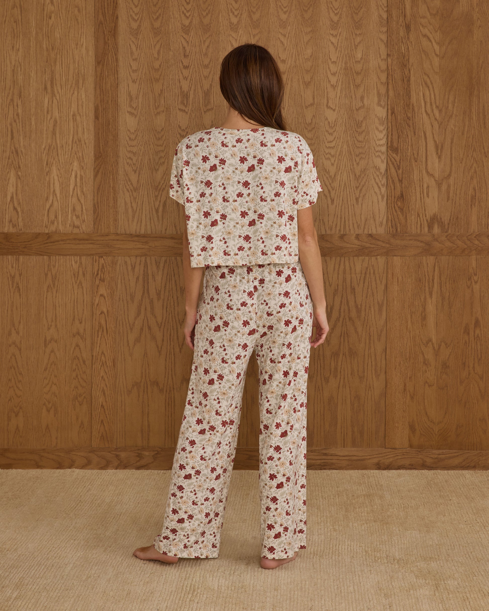 Our Ruthie set includes a soft short-sleeve top and cozy pants. The top has a relaxed fit, and the pants have an elasticized waistband. It is one of the comfiest sets you will ever wear and you can even match it with your little ones in it!